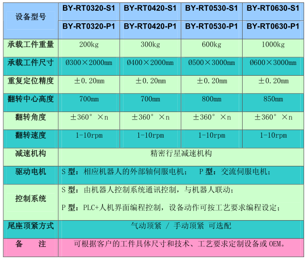 BY-RT XXXX-S(P)1系列 焊接機器人外部軸-- 頭尾架式自動(dòng)翻轉變位機